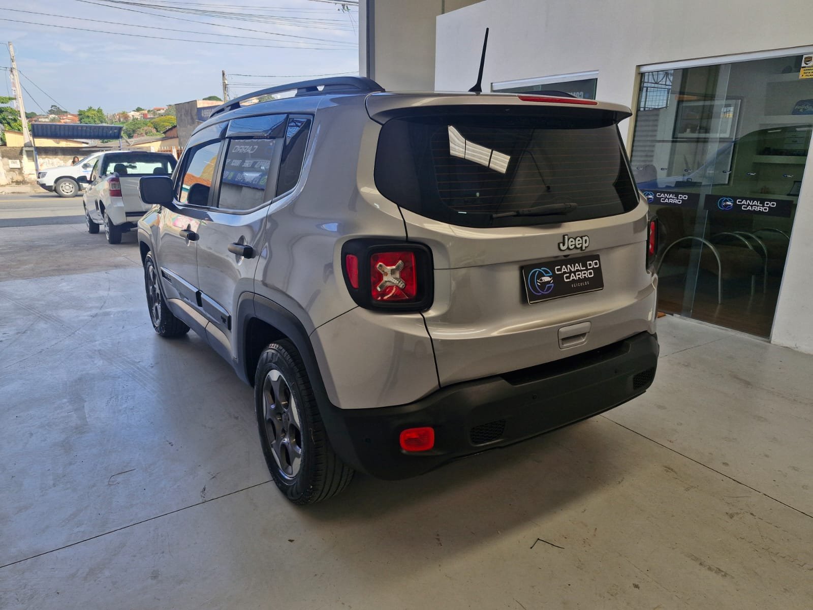 Jeep Renegade 2020, com 79.500 km. Equipado com motor 1.8 flex de 135 hp e transmissão automática de 6 marchas. A cor prata confere um visual moderno e elegante. Ideal para quem busca um SUV versátil, com direção elétrica, ar-condicionado, controle de tração e diversos recursos de conforto, como vidros elétricos e ajuste de altura do banco do motorista. Perfeito para o dia a dia e viagens.